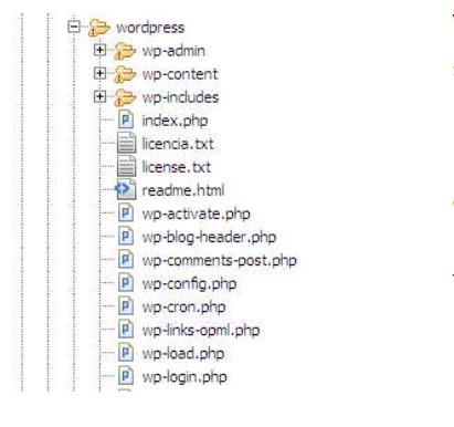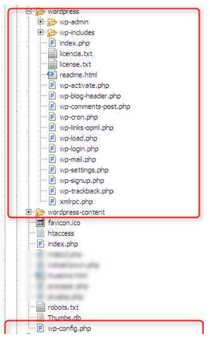 Y ya está; a partir de ahora, si queréis salvar todo el código, deberíais guardar las carpetas wordpress y wordpress-content, pero dado que en la primera solo estará el fichero «wp-config» y el resto será la versión de wordpress….no hace falta salvarlo, sobre todo si también sacamos de dentro el fichero wp-config.