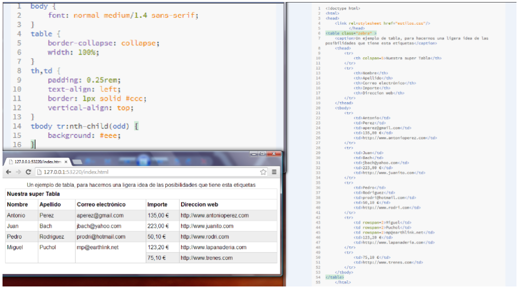 Os dejo el codigo HTML de una tabla, y la presentación que hará de la misma un navegador.