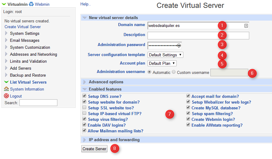 virtualmin_create_virtual_serverLos datos a introducir, serán: