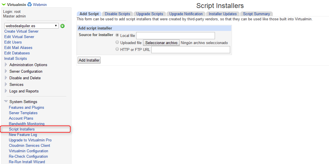 Un servicio que puede ahorrar muchas horas de trabajo, es la posibilidad de disponer de scripts para que nuestros usuarios/clientes puedan instalar en sus sitios virtuales las funcionalidades que necesites. Los scripts tienen la ventaja para el usuario que simplifican la instalación, y para el administrador, que realiza instalaciones correctas por lo que reducen el numero de consultas necesarias.