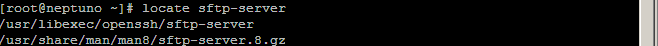 He utilizado el comando «locate» presente en la mayoría de distribuciones, para localizar la ubicación de «sftp-server» perteneciente al paquete Openssh, y que será el servidor que voy a utilizar; veo que se encuentra en
