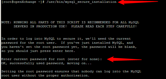 [root@openXchange ~]# /usr/bin/mysql_secure_installation