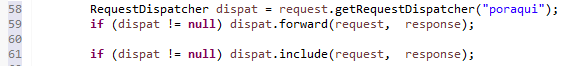 Si queremos transferir el control, utilizamos forward (59), si queremos que cuando termine, el control vuelva a este servlet, utilizamos include (61)