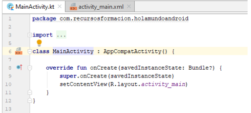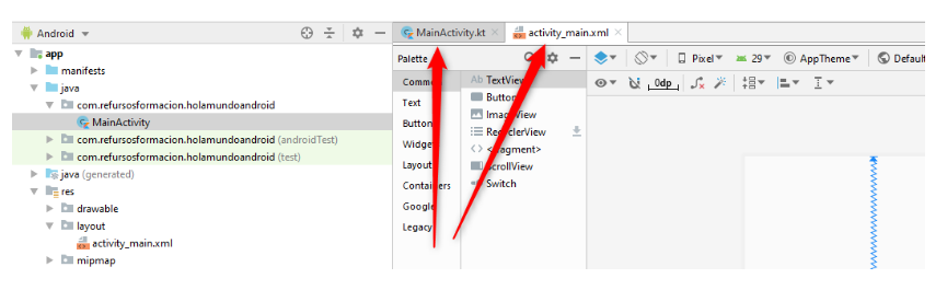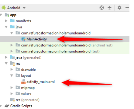 Si os fijais, a la vez que el IDE nos ha creado MainActivity, nos ha creado una pantalla (activity_main.xml). si necesitamos modificar el código lo haremos en MainActivity