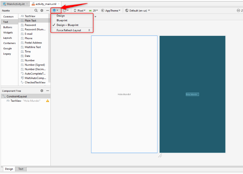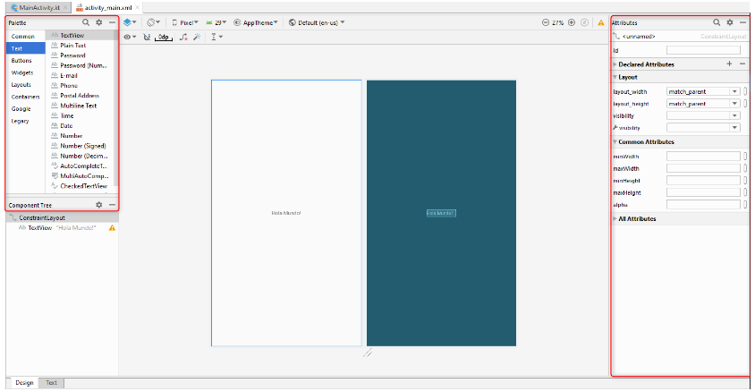 pero si deseamos modificar el aspecto de la pantalla, añadir o quitar algo, deberemos acudir a activity_main.xml