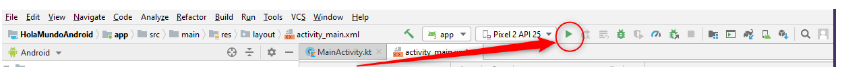 Dicho esto, y, como tenemos creada nuestra primera aplicación «Hola mundo» podemos pulsar en la parte superior.
