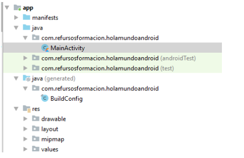 Dentro de la carpeta res, se encuentran todas las instrucciones de visualización, esto es , las pantallas que vayamos creando y las imagenes o demás recursos (res) que deseemos viajen con nuestro aplicativo.