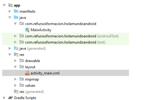 - Gradle Scripts – Gradle es un gestor de dependencias, que nos permite controlar como se va a compilar nuestra aplicación, y que módulos ha de incorporar. Todas las definiciones, se encuentran en esta carpeta.
