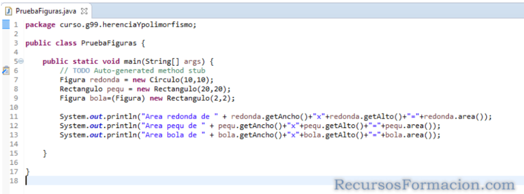 Creamos la clase Rectangulo, con su correspondiente implementacion de «area«