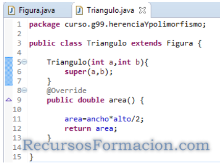Creamos la clase Triangulo e implementamos el calculo del área: