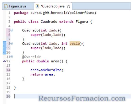 Si hubiéramos creado antes esta clase, podríamos haber hecho heredar Cuadrado de ella, y no hubiéramos tenido que implementar en Cuadrado, el método area……