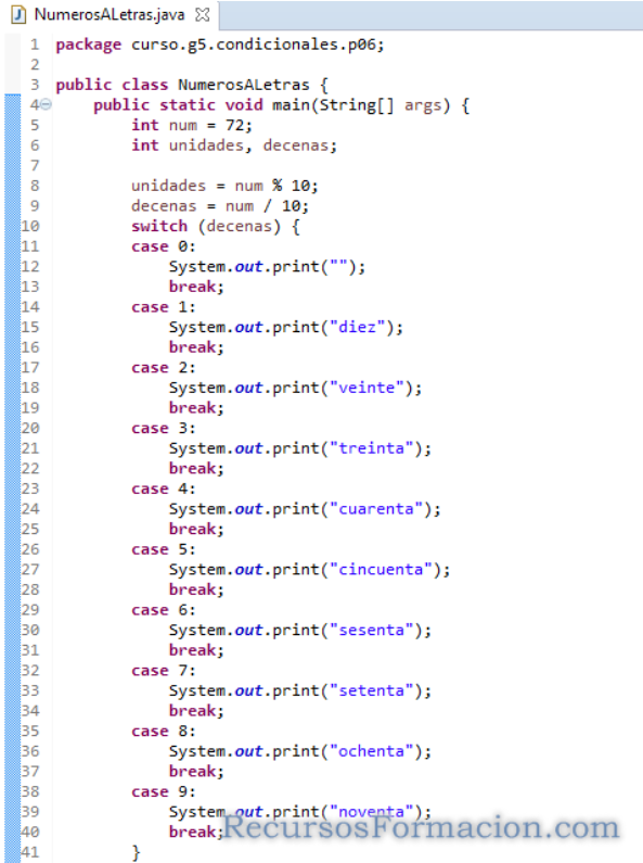 Para este ejercicio, nos solicitan que hagamos una clase que pueda traducir números a letras en el rango de 1 a 99, con dos versiones, una sencilla que no tiene en cuenta la diferencia que existe entre los números 11 a 15, y otra un poco mas elaborada para los convierta correctamente.