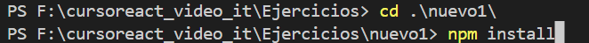 Lo que hemos conseguido es una carpeta (basebase) que contiene todo lo necesario para iniciar un proyecto con React. para usarlo, solo tendremos que copiarla a la carpeta del proyecto que queremos crear, supongamos que el proyecto será «nuevo1», podemos hacer