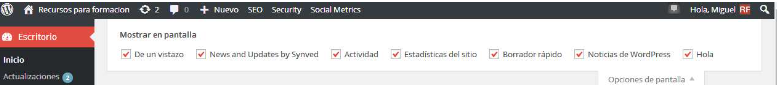 El resto de paneles que vamos a ver, los podremos activar y desactivar desde el botón de «Opciones de pantalla», en la parte superior derecha de nuestro Escritorio