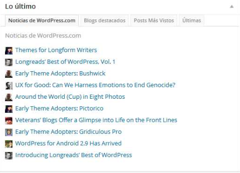 Distribuidos en distintos apartados, podemos encontrar las novedades, los blog de WordPress mas vistos, o los artículos mas leídos