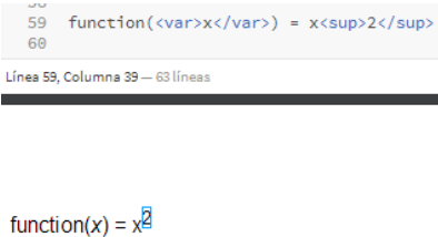 | < sub > < sup > | Indica subindices y superindices, aunque su utilización es netamente en entorno de formulas, podemos utilizarlo en cualquier sitio donde necesitemos dejar notas. nos muestra la fórmula ![]() |