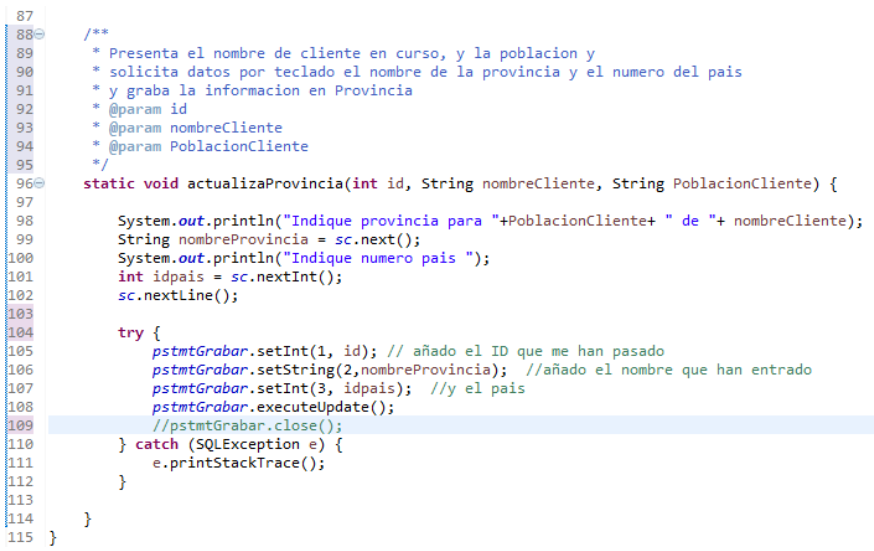 Si la prueba devuelve false, llamamos al método actualizarProvincia que pide los datos por teclado y realiza un insert en la BBDD